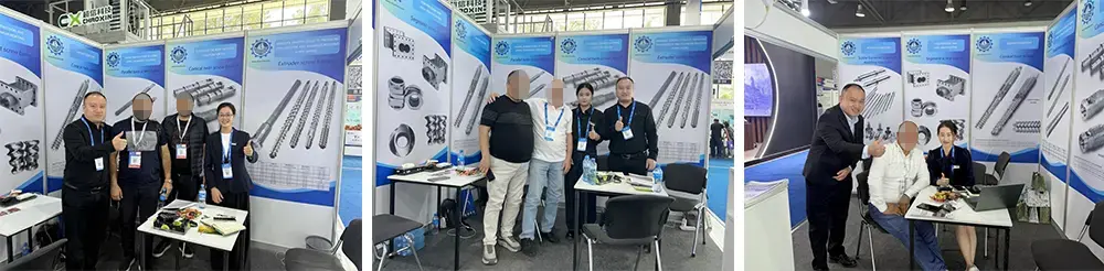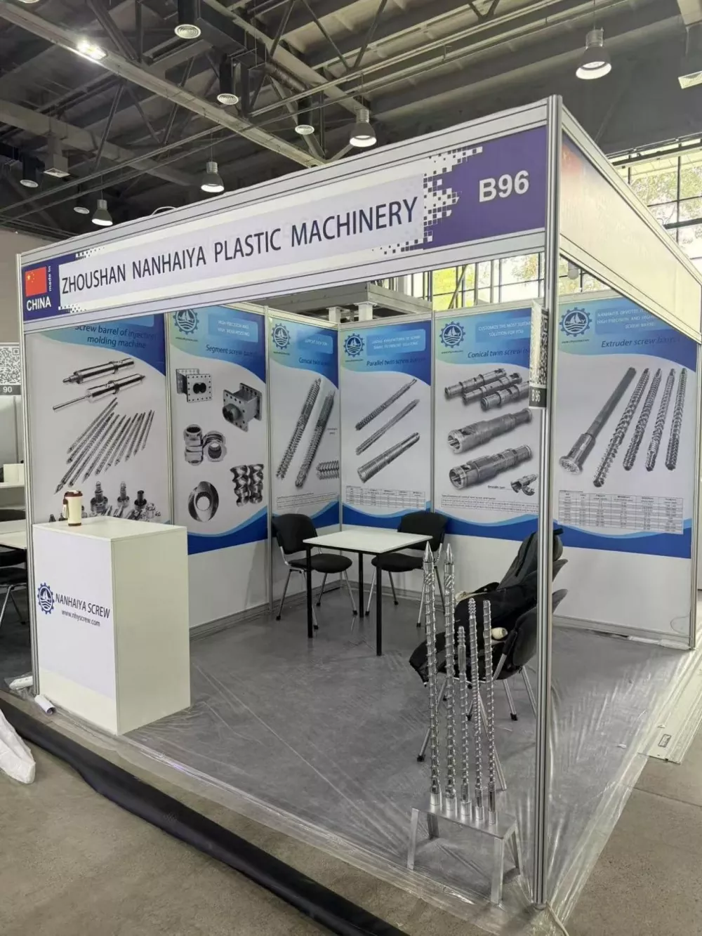 2025 жылдың 21-23 қыркүйегі аралығында Zhoushan Nanhaiya Plastic Machinery Co., Ltd. өзінің стендінде кішірейтілген бұранда мен бөшке үлгілерін көрсетті. Жетекші тозуға төзімді технологиясымен және тапсырыс бойынша шешімдерімен өнімдер Өзбекстан мен Қазақстан сияқты Орталық Азия елдерінен көптеген сатып алушыларды тарта отырып, көрменің басты ерекшелігіне айналды.